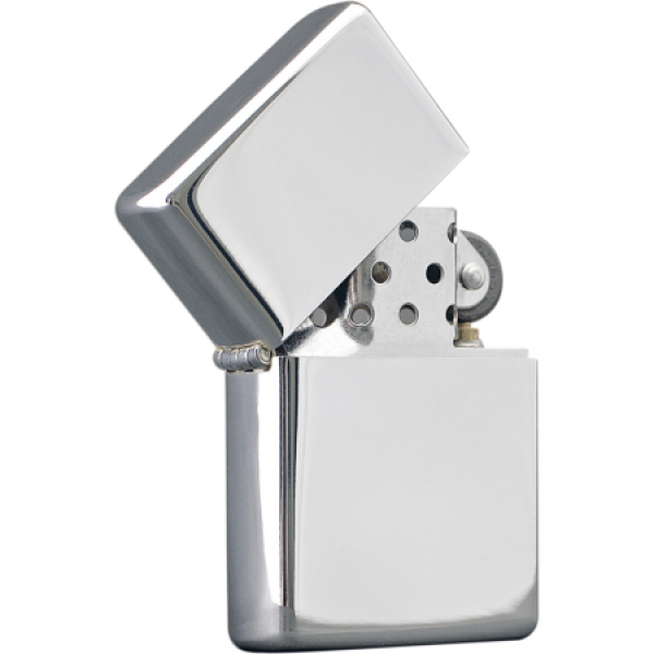 Benzin aansteker American Style gepolijst chroom met kap navulbaar, per stuk verpakt in een doosje